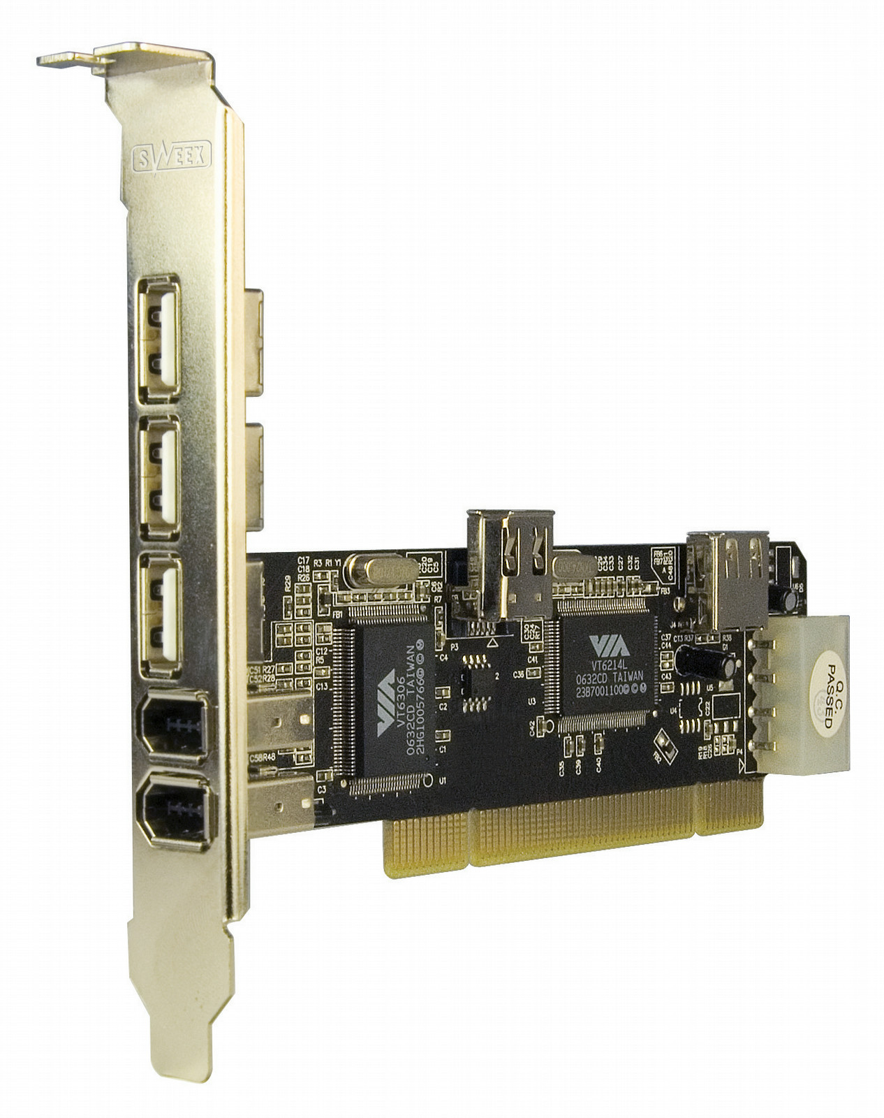 Sweex 4 Port USB 2.0 & 3 Port FireWire PCI Card. Основной интерфейс: PCI, Выходящий интерфейс: USB 2.0. Чипсет: VIA VT6214L + VIA VT6306. Платформа: PC, Минимальные системные требования: CD-ROM, Совместимые операционные системы: Windows 98SE/Me/2000/XP/Vista