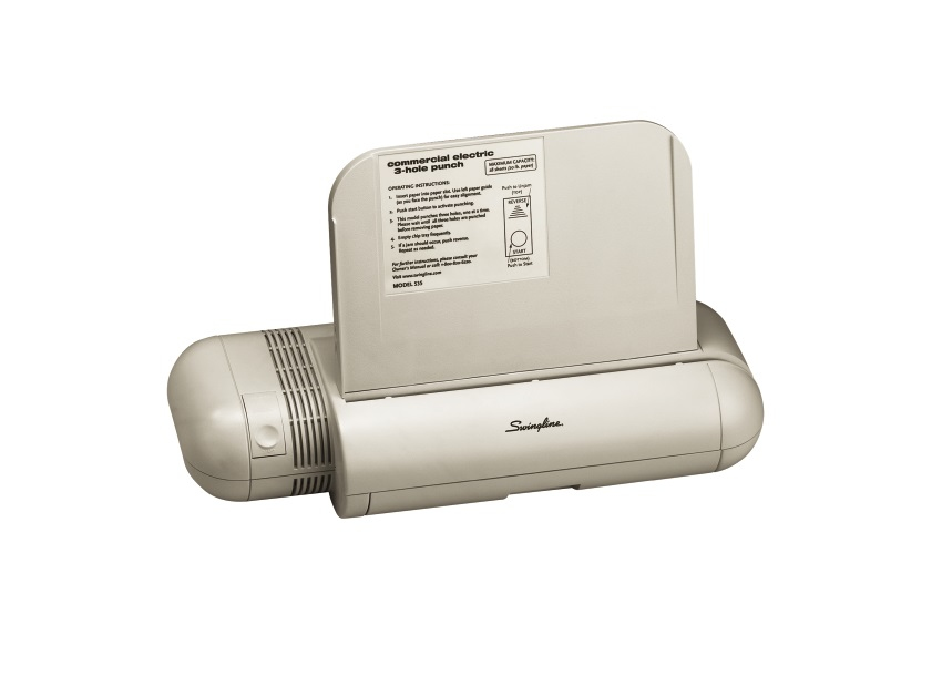 Swingline Commercial Electric Punch. Цвет товара: Платиновый, Вместимость перфоратора: 28 листов, Шаг перфорации: 21,6 см. Размер: 7,11 мм (0.28"), Диаметр: 7 мм. Размеры (ШхГхВ): 419 x 152 x 254 мм