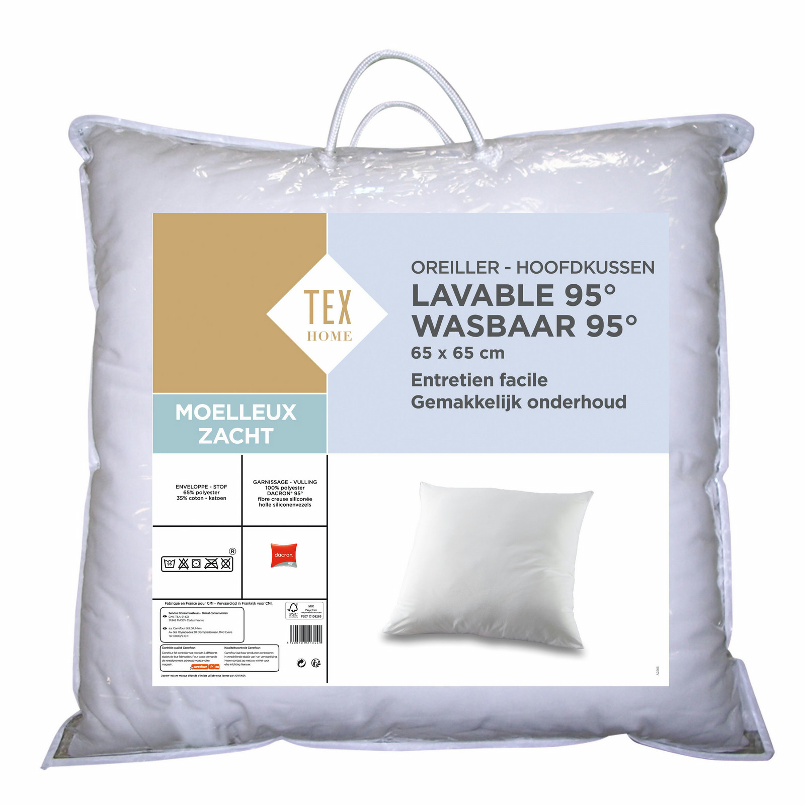 TEX HOME 105585882. Цвет товара: Белый, Размер подушки: 65 x 65 см, Наполнитель подушки: Polyester fiber. Ширина упаковки: 65 см, Высота упаковки: 67 см. Вес: 880 г