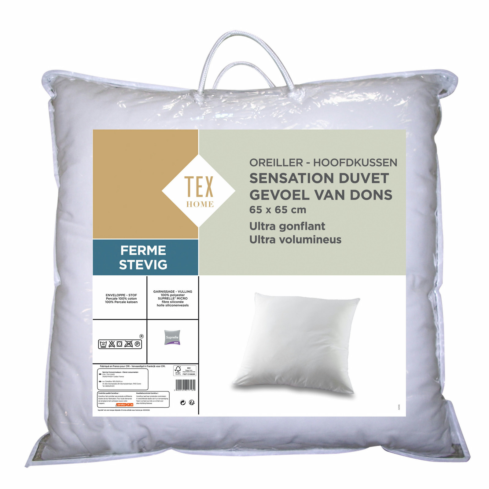 TEX HOME 105585885. Цвет товара: Белый, Размер подушки: 65 x 65 см, Наполнитель подушки: Polyester fiber. Ширина упаковки: 65 см, Высота упаковки: 67 см, Тип упаковки: Полиэтиленовый мешок. Вес: 1,13 кг