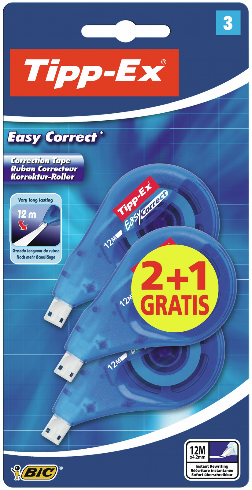TIPP-EX 8395492. Цвет товара: Синий, Длина ленты: 12 м, Ширина ленты: 8 мм. Ширина упаковки: 80 мм, Глубина упаковки: 40 мм, Высота упаковки: 197 мм. Количество в упаковке: 3 шт