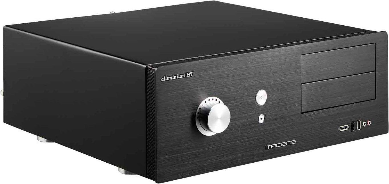 Tacens aluminium HT. Формат: Низкопрофильный, Тип: ПК, Материал: Алюминиевый. Ширина: 428 мм, Глубина: 396 мм, Высота: 155 мм. Вентилятор(-ы): 80x80x25 mm/60x60x25 mm, Отсеки для внутренних приводов: 2 x 3.5”, Отсеки для внешних приводов: 2 x 5.25”