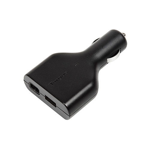 Автомобильное зарядное устройство Targus для ноутбуков и USB-планшетов мощностью 90 Вт позволяет одновременно подключить ноутбук и USB-планшет или смартфон к разъему электропитания автомобиля для быстрой зарядки.