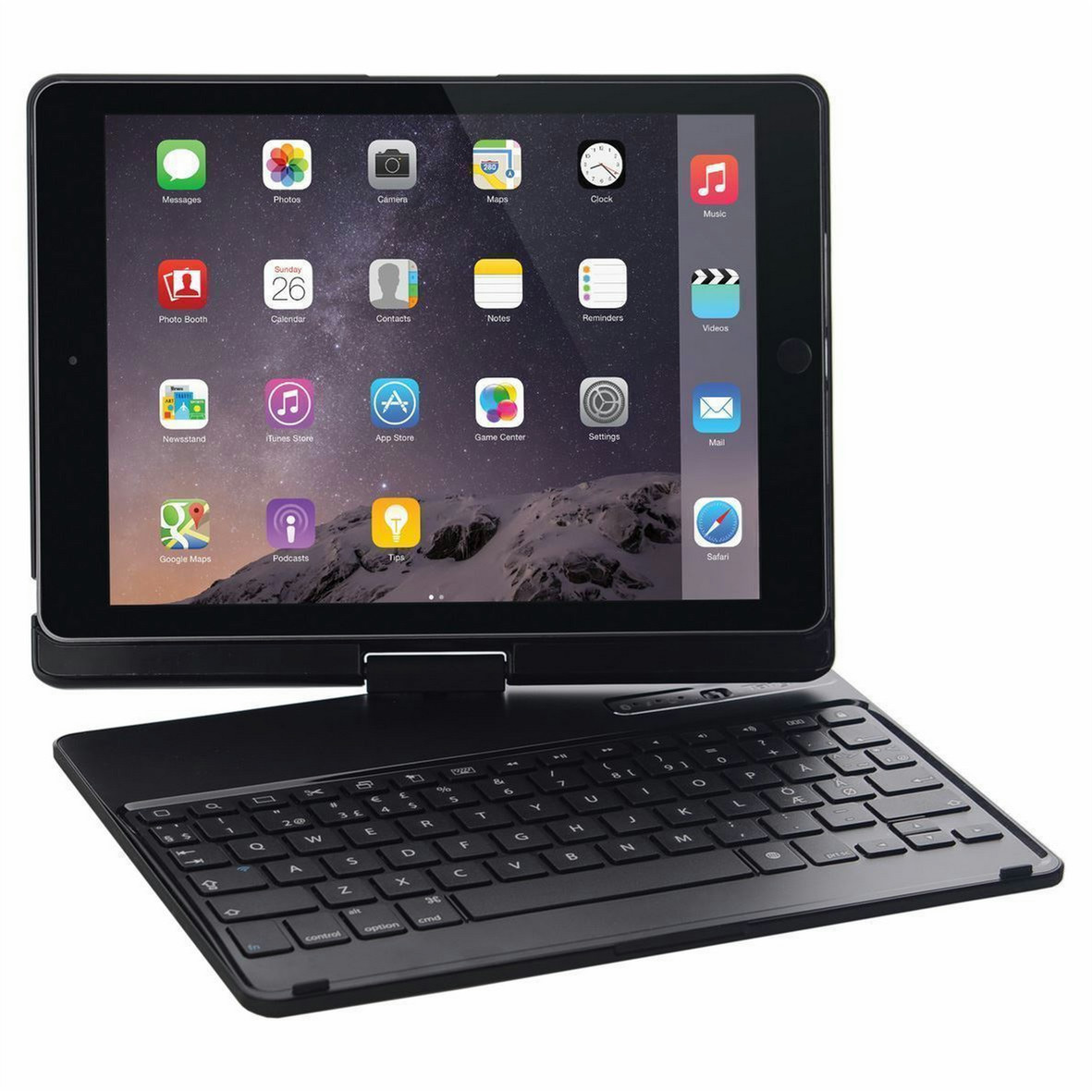 Targus VersaType. Цвет товара: Черный, Материал: Полиуретан, Защитные возможности: Ударостойкий. Совместимость c брэндом: Apple, Совместимость: iPad Air 2, Язык клавиатуры: Арабский. Источник питания: Аккумулятор, Источник зарядки: USB, Срок службы батареи: 130 ч. Технология подключения: Беспроводной, Интерфейс устройства: Bluetooth. Ширина: 243 мм, Глубина: 183 мм, Высота: 20 мм