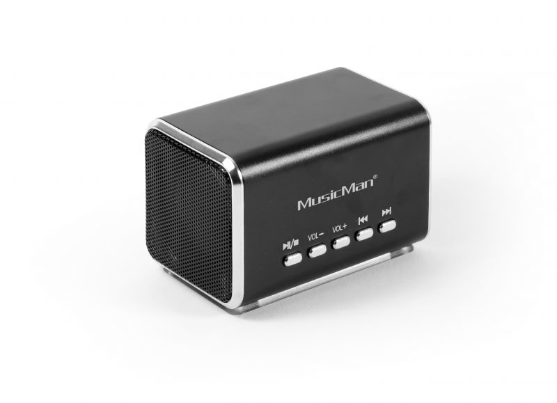 Technaxx MusicMan Midi. Выходные звуковые каналы: 2.0 канала, Усилитель: Встроенный, Subwoofer driver diameter (imperial): 4,5 см (1.77"). Номинальная RMS-мощность: 6 Вт, Диапазон частот: 150 - 18000 Гц, Полное сопротивление: 4 Ом. Технология подключения: Проводная, Интерфейс: USB, Порт подключения наушников: 3,5 мм. Тип продукта: Stereo portable speaker, Цвет товара: Черный, Дизайн: Прямоугольник. Рекомендованное применение: Универсальный, Совместимые карты памяти: MicroSD (TransFlash)