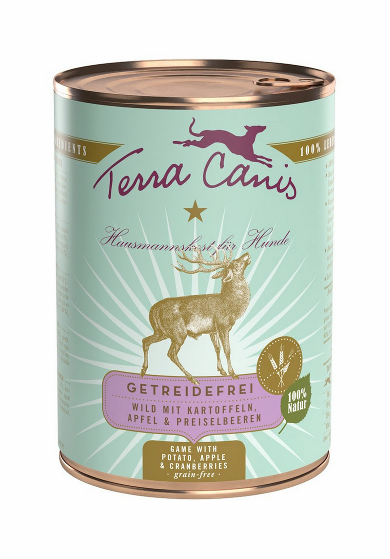 Terra Canis 140037. Pet food flavor: Apple, Клюква, Игры, Картофель, Емкость: 400 г, Возраст питомца: Для взрослых. Белки: 9,5%, Жиры: 5,6%, Crude fibres: 0,3%