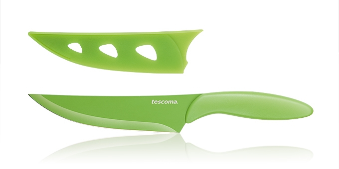 Tescoma 863088. Длина: 25 см. Материал лезвия: Нержавеющая сталь, Материал рукоятки: Пластик, Материал футляра: Пластик. Цвет рукоятки: Зеленый, Цвет лезвия: Зеленый