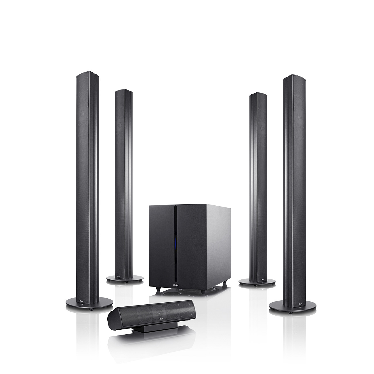 Teufel Columa 300 Set L. Рекомендованное применение: Домашний кинотеатр. Тип колонок-сателлитов: 2-полосная, Диапазон частот сателлита: 140 - 20000 Гц. Тип передней колонки: 2-полосная, Частотный диапазон передней колонки: 140 - 20000 Гц. Тип центрального динамика: 2-полосная, Средний частотный диапазон центральной колонки: 140 - 22000 Гц. Тип сабвуфера: Active subwoofer