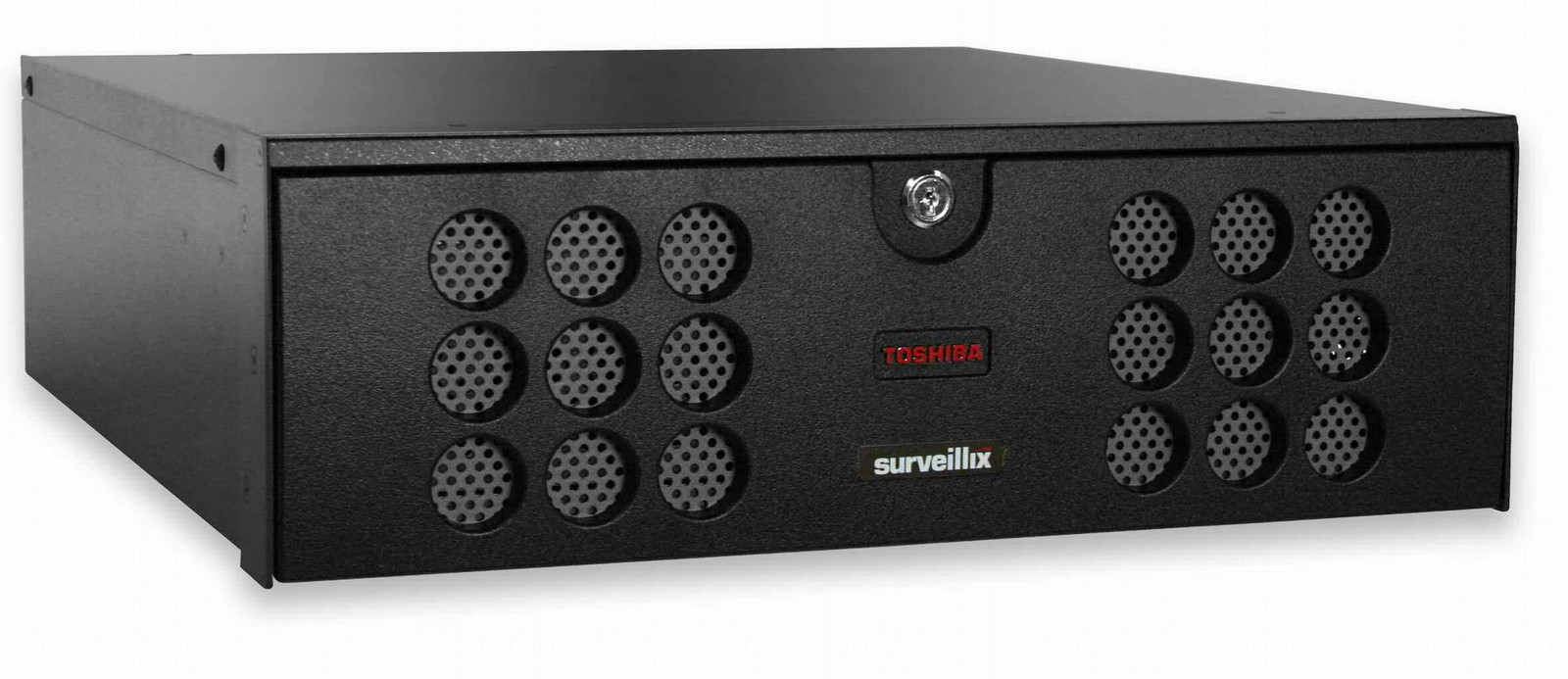 Toshiba XVSe. Форматы сжатия видео: H.264, M-JPEG, MPEG4, Поддерживаемые разрешения воспроизведения: 360 x 240, 720 x 240, 720 x 480, Система аналогового формата сигнала: NTSC, PAL. Требования к питанию: AC 100-240V (50Hz/60Hz). Размеры (ШхГхВ): 552 x 440 x 133 мм. Цвет товара: Черный. Тип Ethernet интерфейса: Gigabit Ethernet, Поддерживаемые сетевые протоколы: TCP/IP, UDP