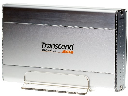 Transcend StoreJet 3.5" IDE-HDD Sliver. Интерфейс: USB 2.0. Цвет товара: Cеребряный, Материал: Алюминиевый. Вес: 450 г. Размеры (ШхГхВ): 198,5 x 123,4 x 35 мм