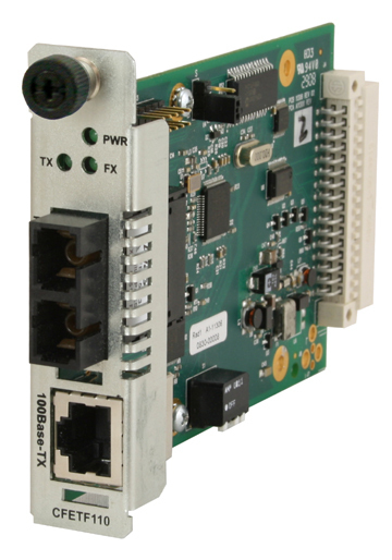 Transition Networks CFETF1011-110. Входной интерфейс конвертера: 100Base-TX, Выходной интерфейс конвертера: 100BASE-FX, Стандарты сети: IEEE 802.3u. Технология подключения: Проводная, Оптоволоконный коннектор: ST. Тип оптоволокна: Multi-mode. Сертификация: CE, FCC A; CISPR A; VCCI 1. Размеры (ШхГхВ): 22 x 127 x 86 мм