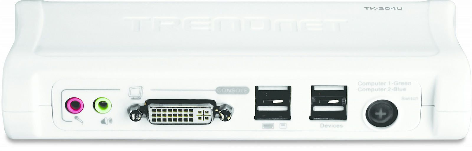 Trendnet TK-204UK. Тип порта клавиатуры: USB, Тип порта мыши: USB. Максимальное разрешение: 1920 x 1200 пикселей. Сертификация: CE, FCC, ROHS. Вес: 520 г. Технология подключения: Проводная, Тип подачи питания: DC, Размеры (ШхГхВ): 65,5 x 154 x 27 мм