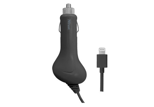 Trust 19162. Тип зарядного устройства: Авто, Совместимые устройства: MP3, Планшет, Телефон, Тип источника питания: Прикуриватель. Цвет товара: Черный. Поставляемые кабели: Lightning