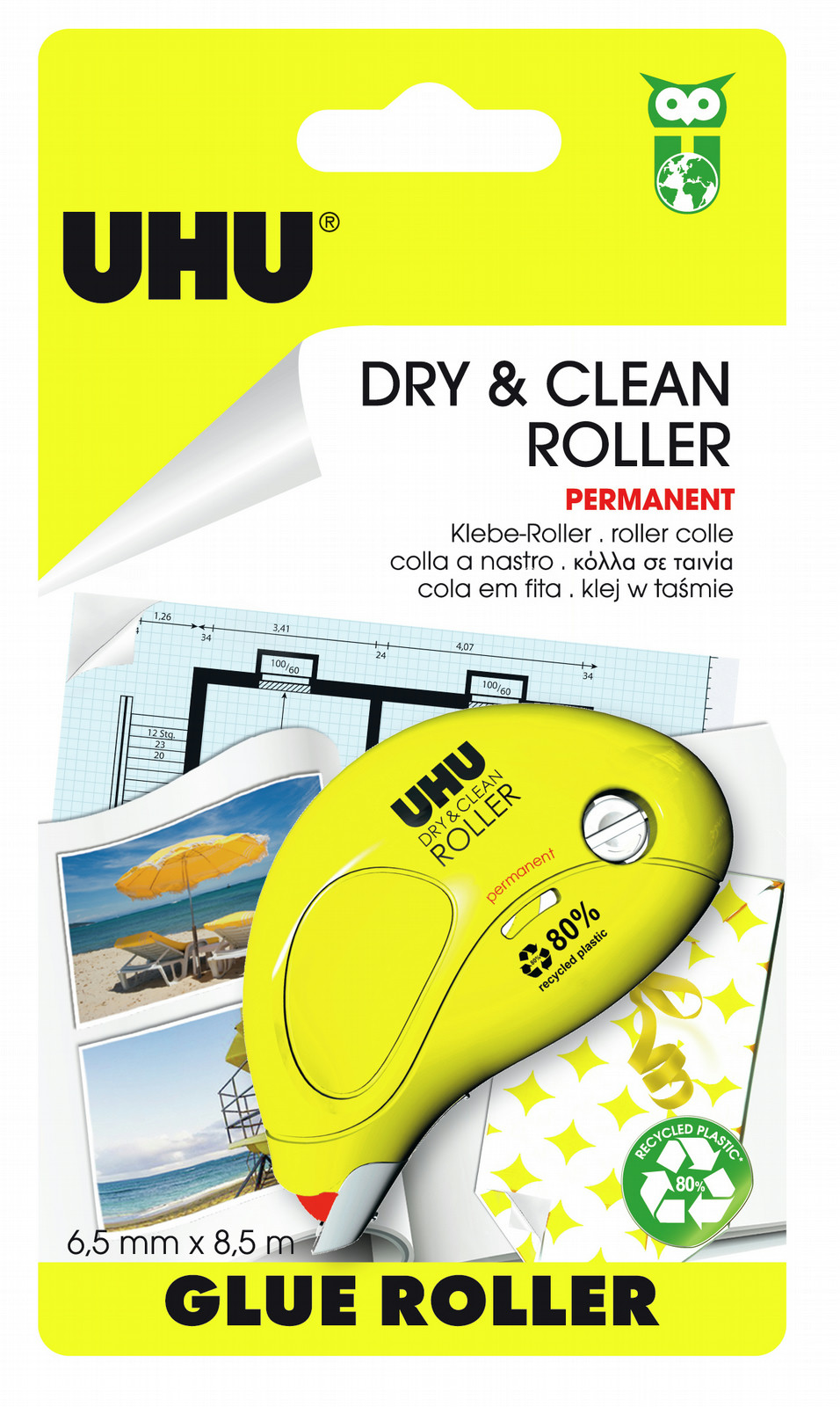 UHU D1672. Цвет товара: Желтый, Длина ленты: 8,5 м, Ширина ленты: 6,5 мм. Тип упаковки: Блистер. Количество в упаковке: 1 шт. Количество в транспортировочной упаковке: 6 шт