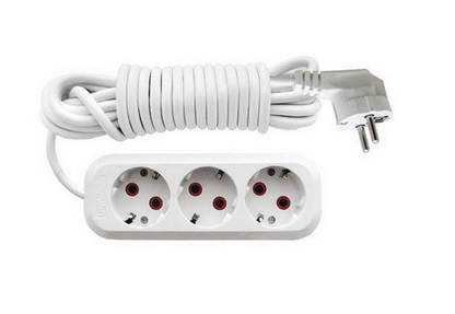 Удлинители с заземляющим контактом –евростандарт. Материал корпуса – полистирол. Питающий провод марки ПВС повышенной гибкости с усиленной двойной изоляцией армирован литой трехполюсной вилкой. Конструкция контактов розеток позволяет подключать любые существующие электроприборы, оснащенные вилкой 4,0 мм2 (российский стандарт) и 4,8 мм2 (европейский стандарт). Сочетание потребительских свойств и цены наилучшее среди бытовых удлинителей.