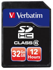 Verbatim 32GB HD Video. Емкость: 32 ГБ, Тип флэш-карты: SDHC, Скорость считывания: 20 МБ/с. Цвет товара: Черный. Скорость передачи: 6 МБ/с