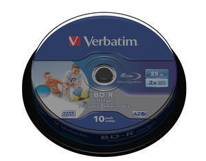 Verbatim BD-R SL LTH Type 2x25GB 10 Pack Spindle. Скорость записи BD-R: 2х. Тип упаковки: Шпиндель. Количество в упаковке: 10 шт