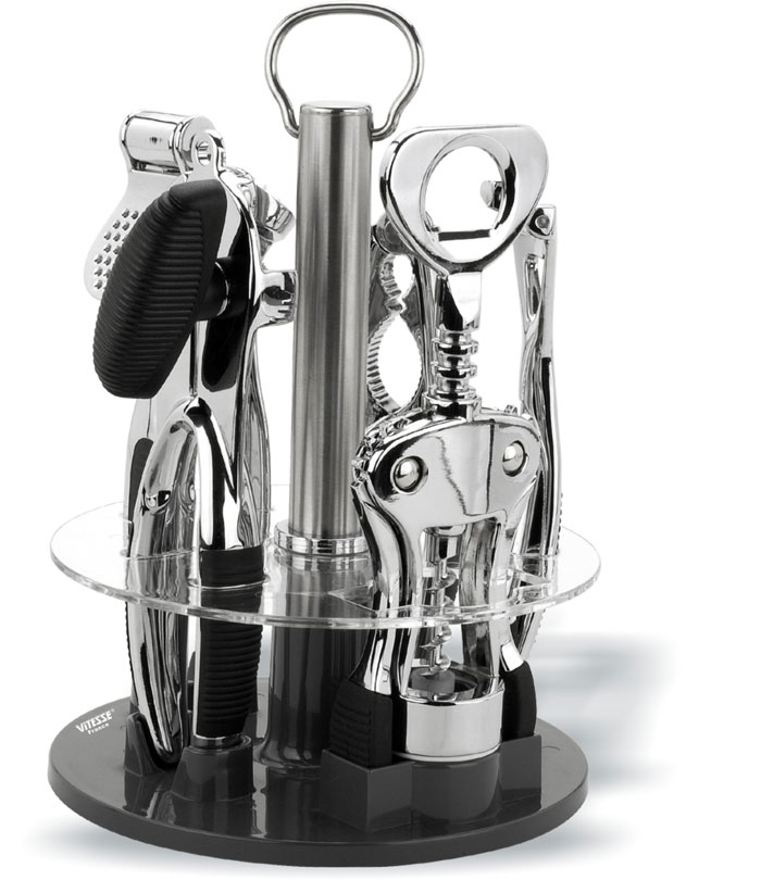 Консервный ключ, Штопор, Пресс для чеснока, Овощечистка, Орехокол, Подставка, нержавеющая сталь
