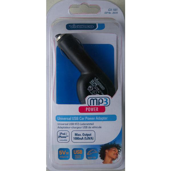 Vivanco 26478. Тип зарядного устройства: Авто, Совместимые устройства: Мобильный телефон, MP3, Тип источника питания: Прикуриватель. Цвет товара: Черный. Входное напряжение: 12 - 13.8