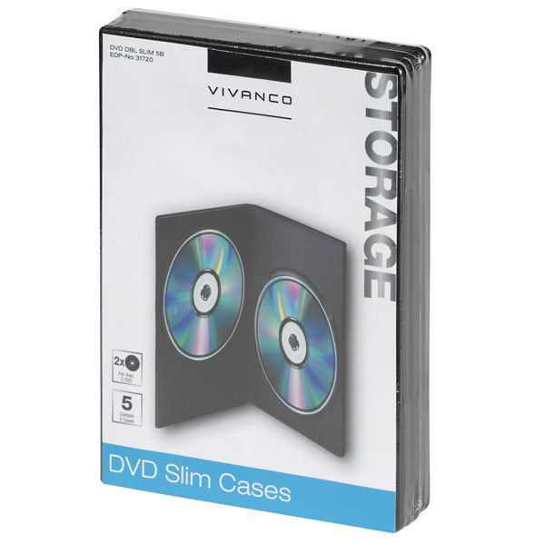 Vivanco 31720. Тип чехла: DVD, Цвет товара: Черный, Объем хранения CD: 2 дисков. Ширина: 19 см, Глубина: 13,6 см, Высота: 3,5 см. Количество продуктов в комплекте: 5 шт