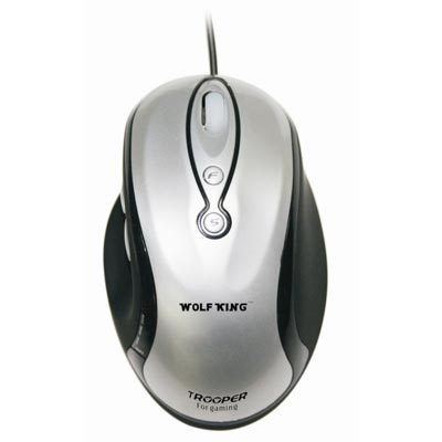 Wolfking Trooper Gaming Mouse, Silver. Интерфейс устройства: USB, Датчик перемещения: Лазерный, Разрешительная способность движения: 2200 dpi. Цвет товара: Cеребряный