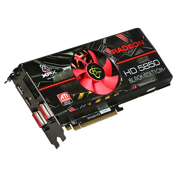 XFX HD5850. Graphics processor family: AMD, Максимальное разрешение: 2560 x 1600 пикселей, Тактовая частота процессора: 765 МГц. Объём памяти дискретного графического адаптера: 1 ГБ, Тип памяти графического адаптера: GDDR5, Шина памяти: 256 бит. Тип интерфейса: PCI Express 2.1. Тип охлаждения: Aктивный, Сертификация: ROHS. Минимальное электропитание системы: 500 Вт