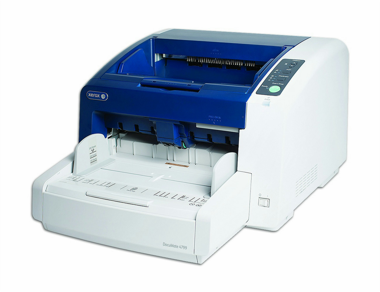 Xerox 4799, DocuMate. Максимальный размер сканирования: 302 x 432 мм, Разрешение оптического сканирования: 600 x 600 dpi, Выходная глубина цвета: 24 бит. Тип сканера: ADF scanner, Цвет товара: Синий, Белый. Тип сенсора: Dual CIS, Ежедневная нагрузка (макс): 40000 страниц, Источник света: Xenon FL. Емкость автоподатчика бумаги: 350 листов. Максимальный размер бумаги ISO A-формата: A3, Максимальная область сканирования (Автоподатчик бумаги): 302 x 432 мм, Минимальная область сканирования (Автоподатчик бумаги): 48 x 70 мм