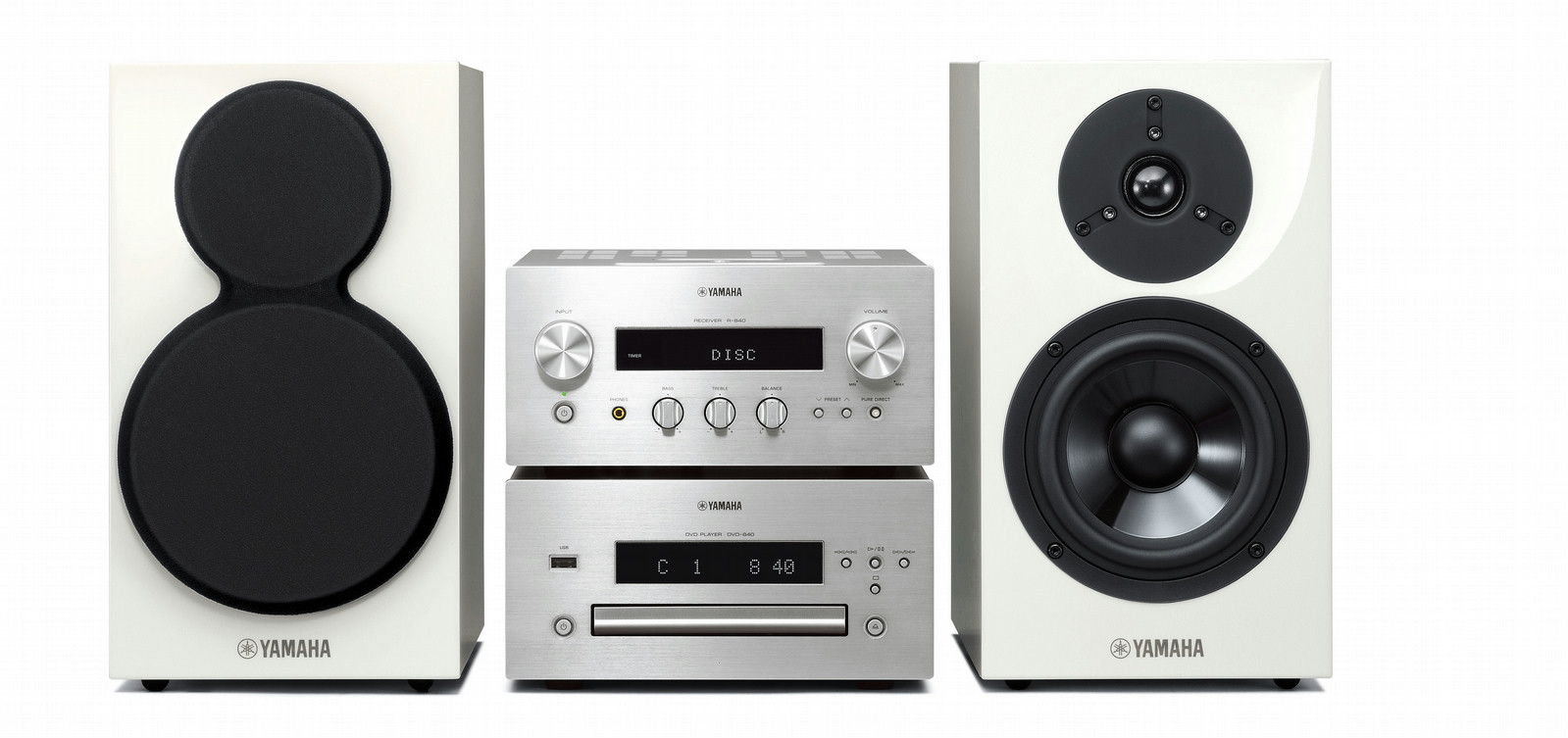 Yamaha MCR-840. Тип проигрывателя оптический дисков: DVD проигрыватель, Поддерживаемые типы дисков: CD,DVD, Форматы дисков (воспроизведение): CD audio,CD video. Поддерживаемый видеоформат: DIVX. Номинальная RMS-мощность: 130 Вт, Аудио декодеры: Dolby Digital,DTS 2.0, Сoотношение "сигнал/помеха" (SNR): 100 дБ. Поддерживаемые диапазоны радио: FM. Tweeter diameter: 2,5 см, Woofer diameter: 13 см