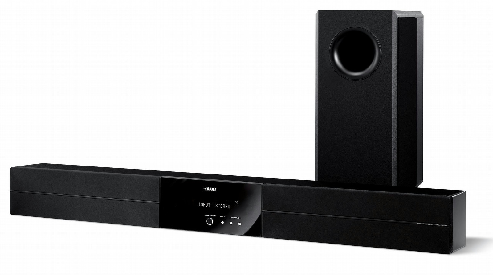 Yamaha YAS-81. Выходные звуковые каналы: 2.1 канала, Номинальная RMS-мощность: 210 Вт. Поддерживаемые диапазоны радио: FM, FM диапазон: 87,5 - 108 МГц. Среднеквадратичная мощность сателлитов: 70 Вт. Номинальная мощность сабвуфера: 70 Вт. Размеры центрального динамика (ШxГхВ): 1030 x 100 x 105 мм, Вес центральной колонки: 6 кг, Размеры сабвуфера (ШxГхВ): 194 x 450 x 400 мм