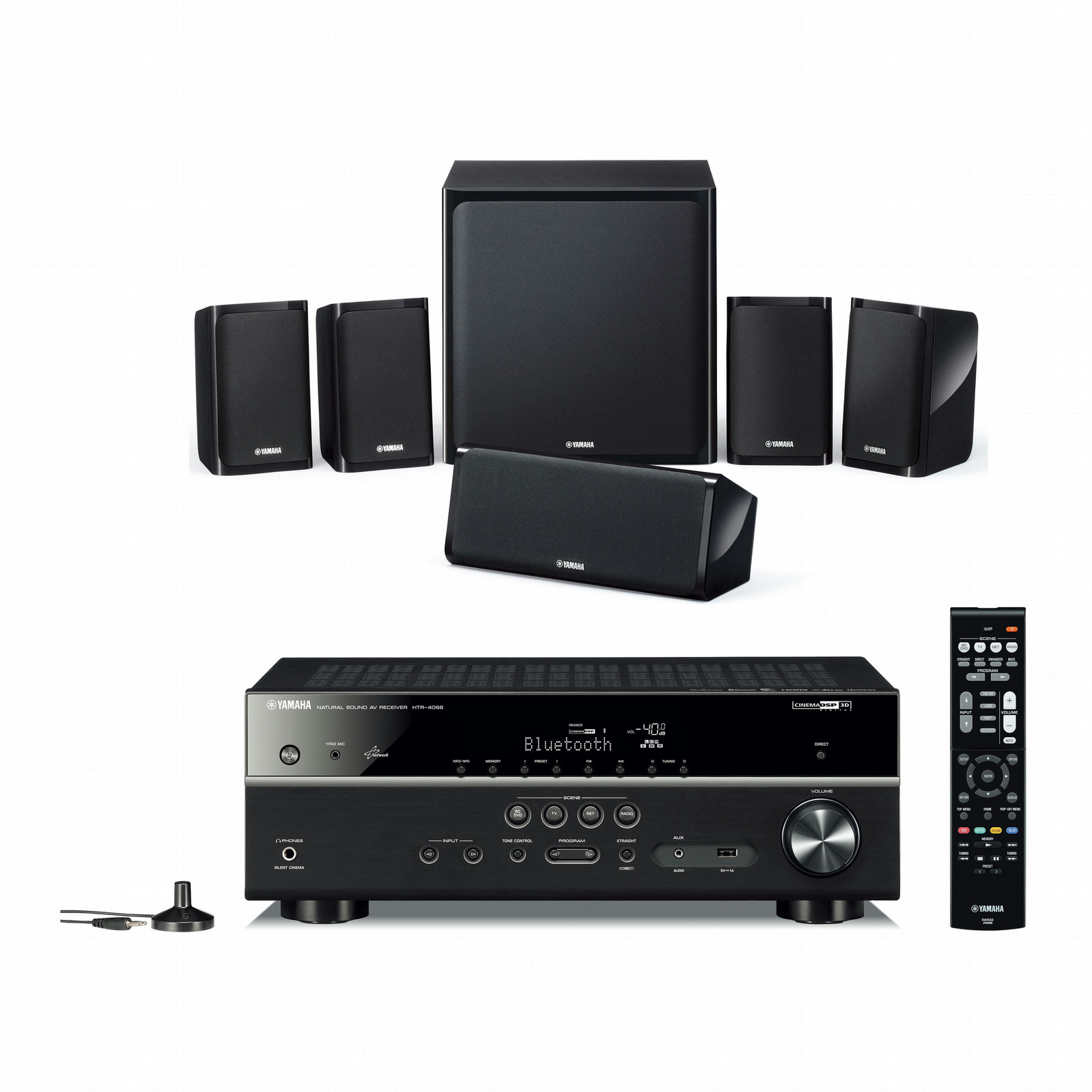 Yamaha YHT-4920 EU. Тип проигрывателя оптический дисков: Не включено. Выходные звуковые каналы: 5.1, Номинальная RMS-мощность: 160 Вт, Аудио декодеры: DTS-HD Master Audio, Dolby TrueHD. Поддерживаемые диапазоны радио: AM, FM. Размеры основного блока (ШхГхВ): 435 x 327 x 161 мм, Вес главной единицы: 8,1 кг, Размеры фронтальной колонки (ШхГхВ): 112 x 116 x 176 мм. Потребляемая мощность (в режим ожидания): 0,1 Вт