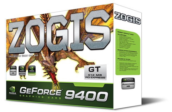 Zogis GeForce 9400 GT. Graphics processor family: NVIDIA, Графический процессор: GeForce 9400 GT, Максимальное разрешение: 2560 x 1600 пикселей. Тип памяти графического адаптера: GDDR2, Шина памяти: 128 бит, Тактовая частота памяти: 667 МГц. Тип интерфейса: PCI Express 2.0. Поддерживаемый видеоформат: H.264,VC-1,WMV. Тип охлаждения: Aктивный
