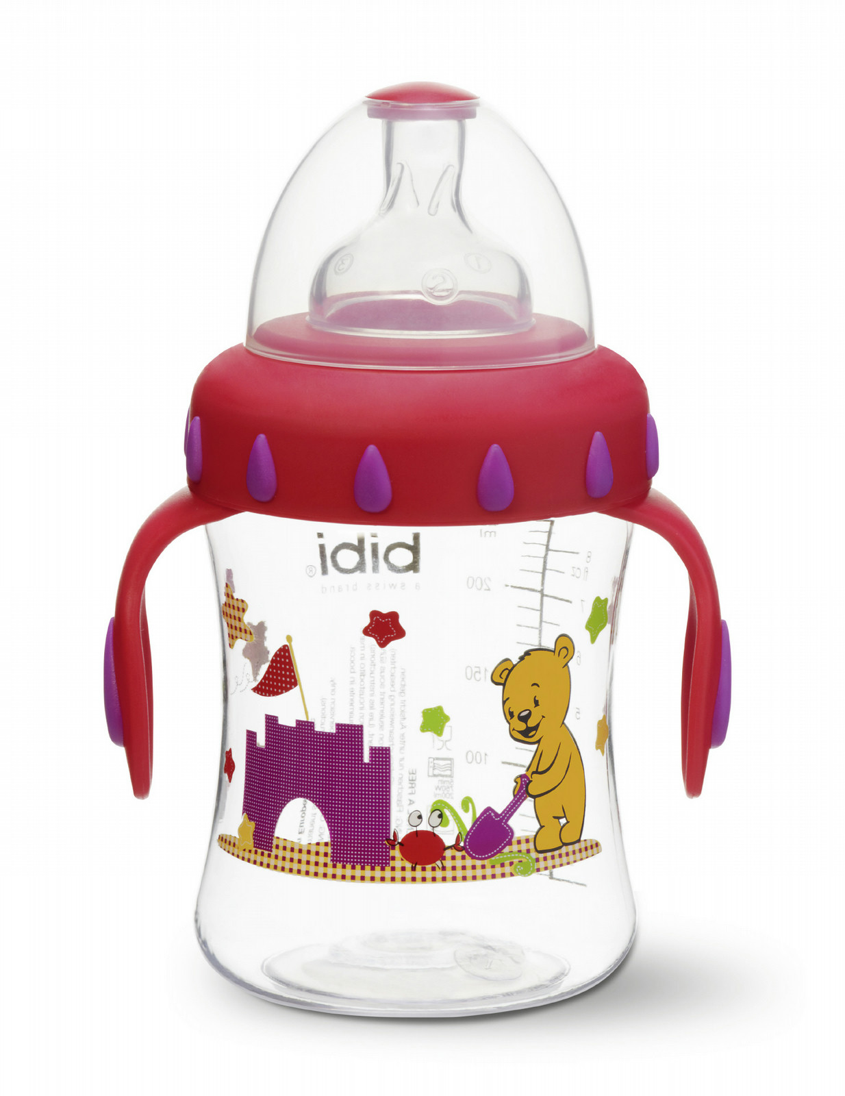 bibi BEACH 250мл Красный, Прозрачный бутылочка для кормления