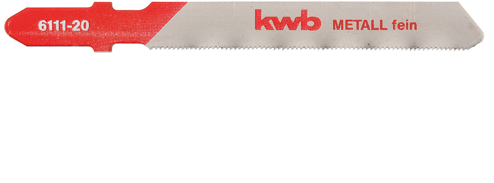 kwb 611120. Тип продукта: Jigsaw blade, Подходит для материалов: Листовой металл, Материал лезвия: Быстрорежущая сталь. Расстояние между зубьями лезвия: 0,7 мм. Overall length: 7,6 см. Количество в упаковке: 2 шт, Тип упаковки: Блистер
