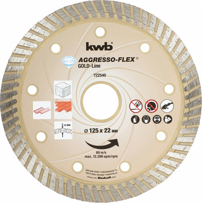 kwb 722540. Тип: Ріжучий диск, Подходит для материалов: Кирпич, Бетон, Гранит, Совместимость c брэндом: Универсальный